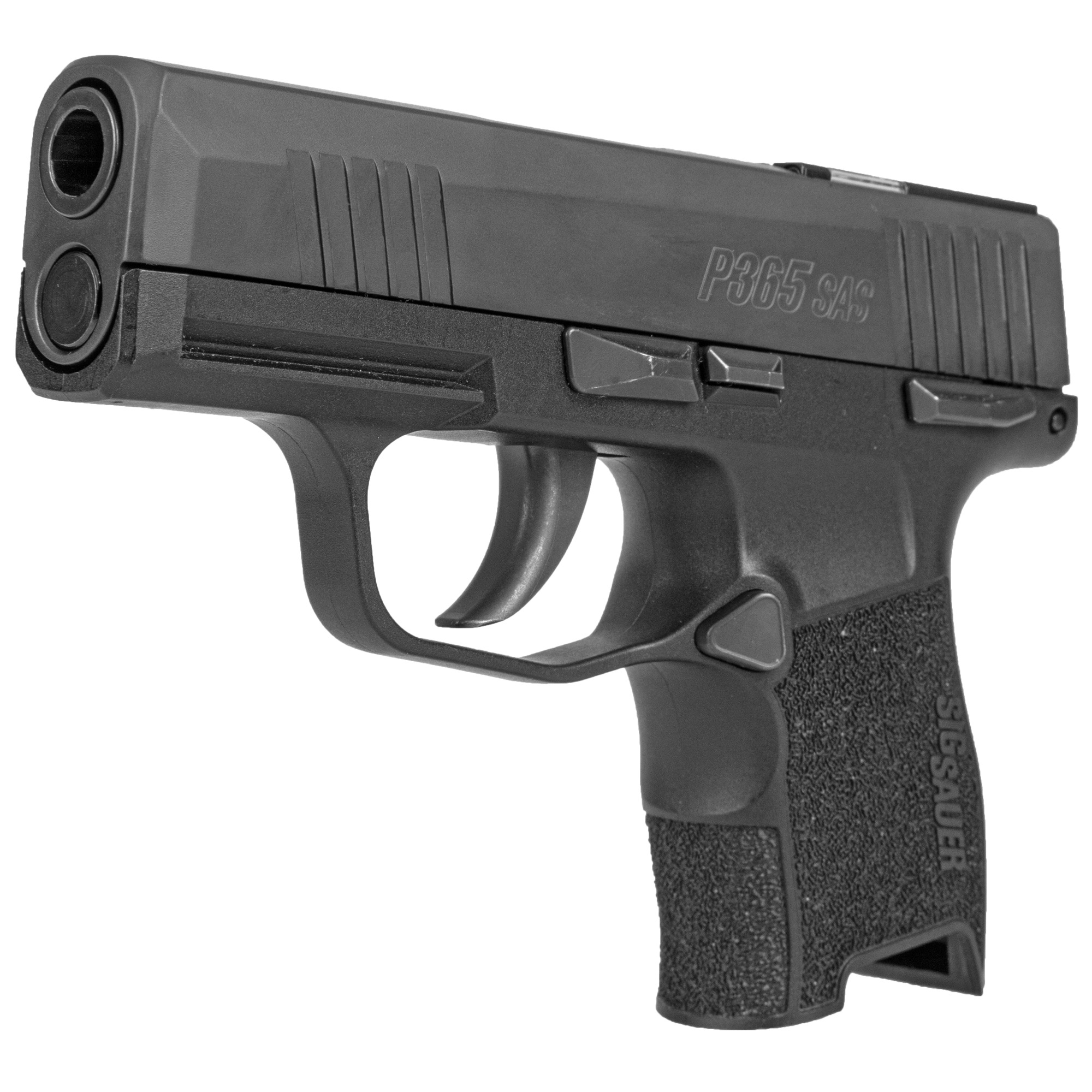 The P365SAS was designed for the serious CCW user who truly understands the value of smoother draws, faster sight acquisition, and more effective engagements at realistic distances. This pistol does just that by taking the concept of the SIG Anti Snag (SAS) treatment to a whole new level. With the incorporation of the FT Bullseye sight embedded into the slide, the P365SAS does away with the need of a primary snag hazard of all pistolsthe front sight. With the assistance of fiber optics during the day and tritium in low light, the user can now obtain a crystal clear high-visibility bullseye sight picture at real-world engagement distances faster than ever before. The flush slide catch and takedown levers ensure absolute smoothness and zero snag risk. After shooting the P365SAS, sights will never look the same.